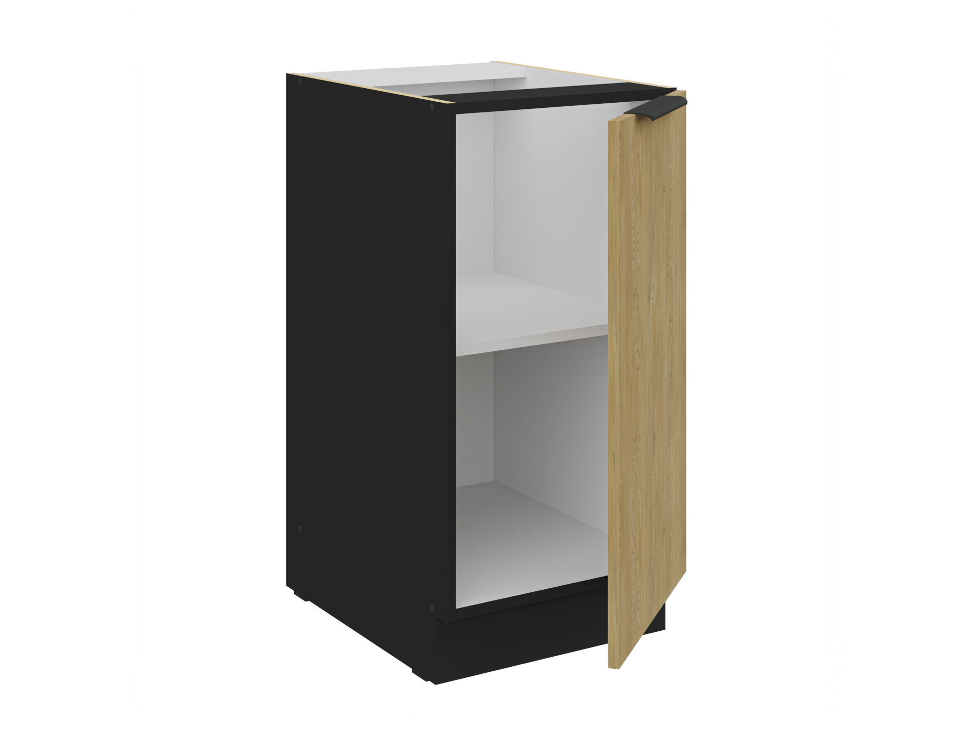 Alumistel ustega kappidel on üks riiul sees.