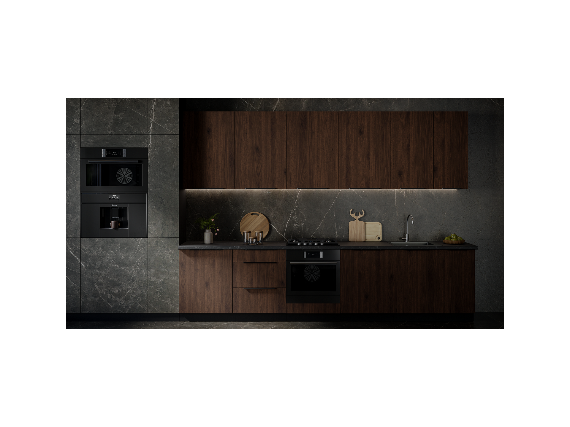 Ülemistel kappidel, kõrgusega 90 cm, on sees 3 riiulit (välja arvatud hingedega esipaneelidega kapid).