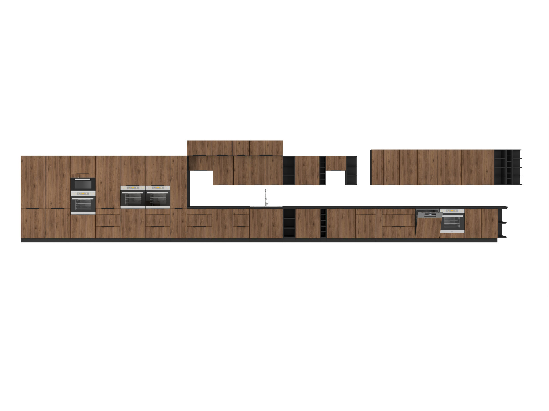 Ülemistel 90 cm kõrgustel kappidel on sees 3 riiulit (välja arvatud ülevalt avatavate kappidega kapid)