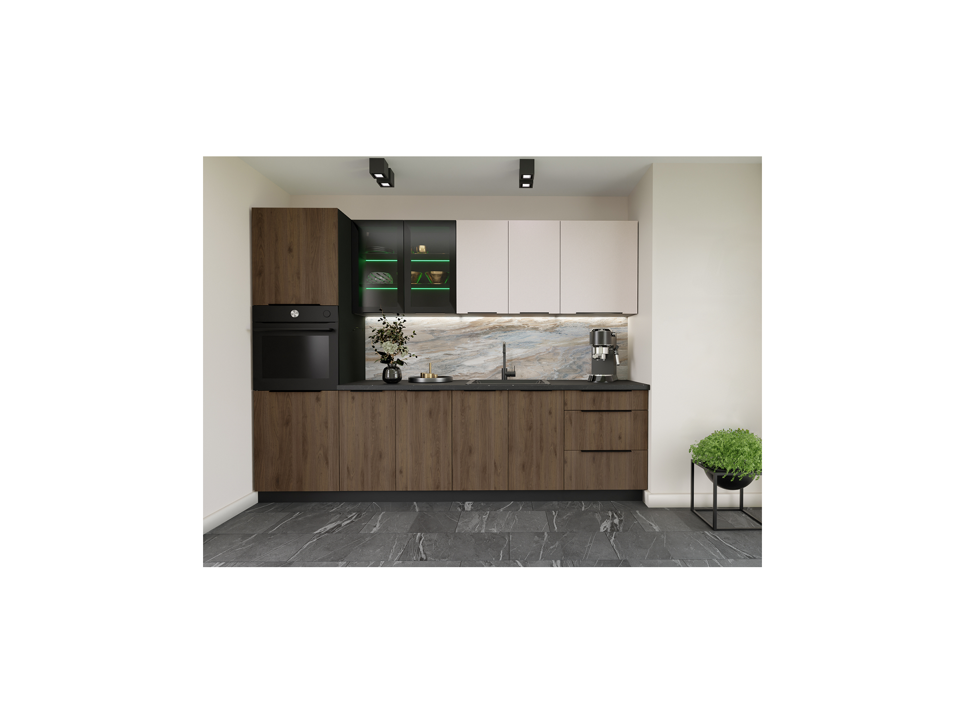 Näidisköögi Monza + Arona kombinatsioon. Kappide valik on vaba.