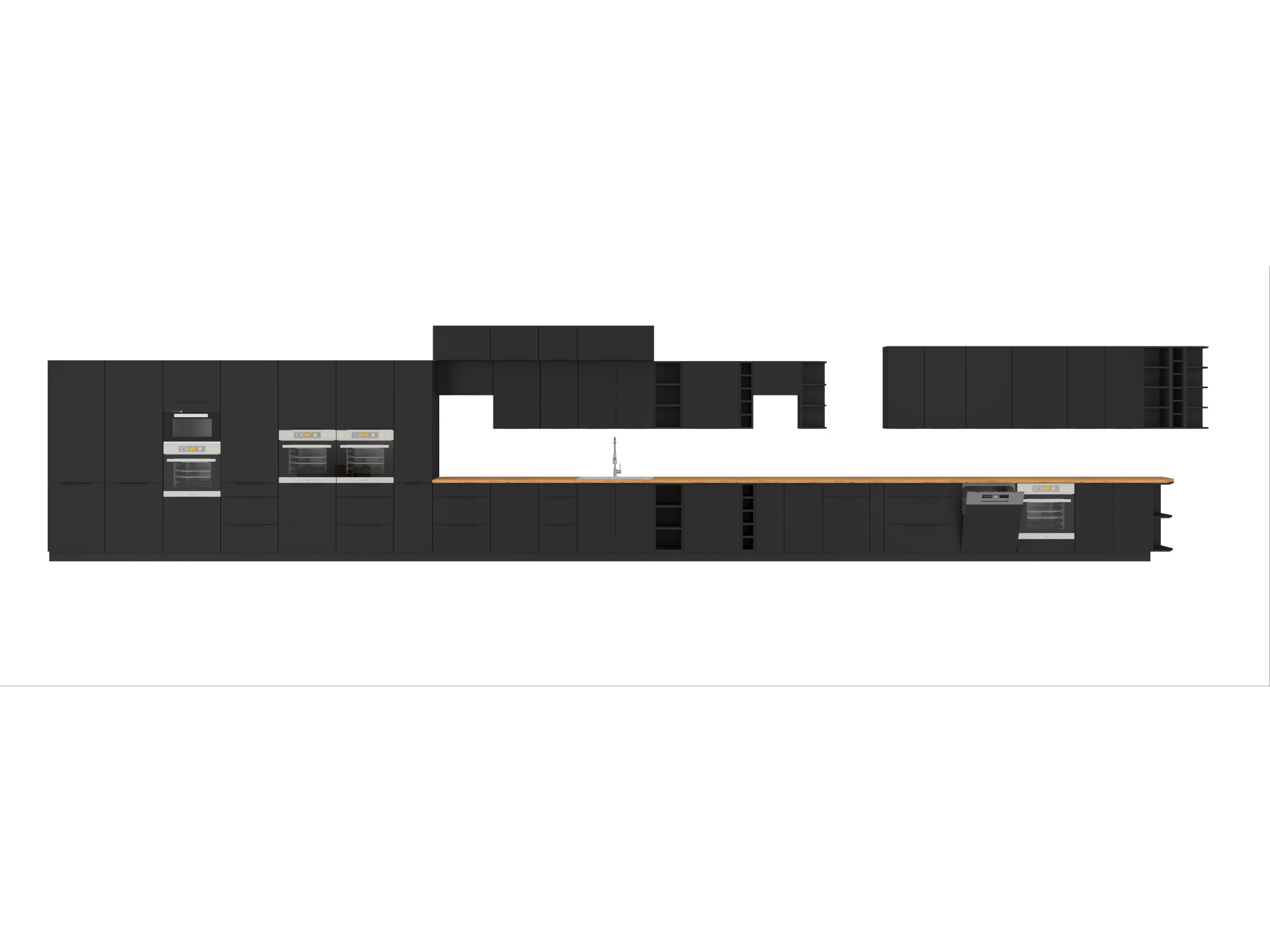 Ülemistel 90 cm kõrgustel kappidel on sees 3 riiulit (välja arvatud kallutatava esiküljega kapid)