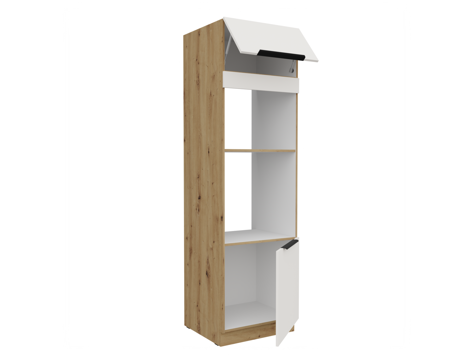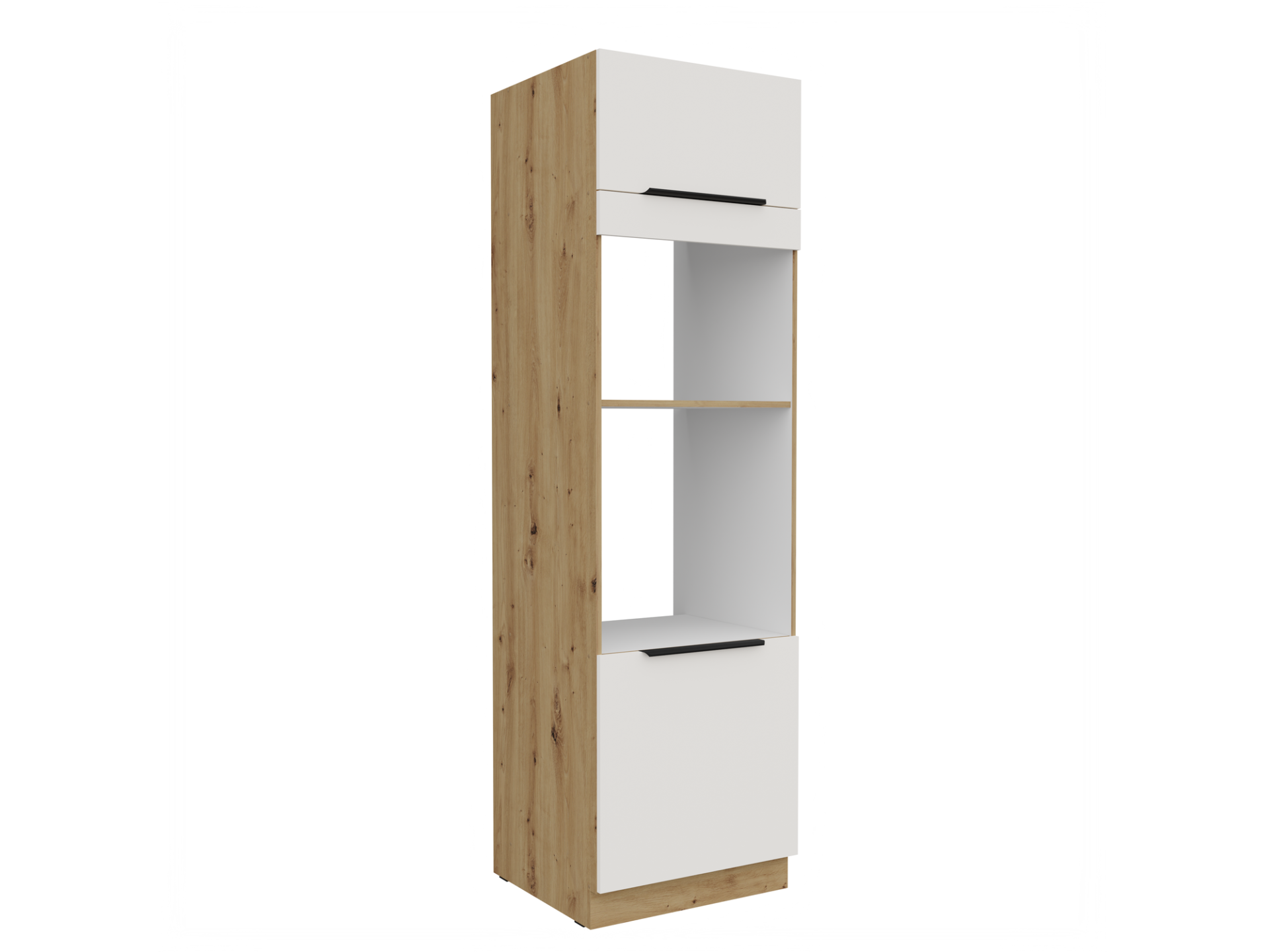 Sisseehitatud ahju ja mikrolaineahjuga kapi korstnaga kolonn 60 DPM-210 2F Köögi ARIA esipaneelid valge AFM