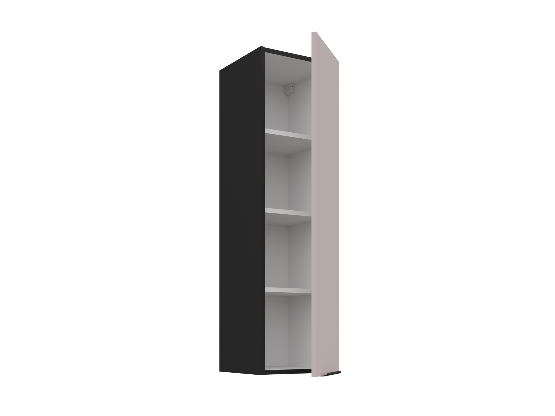Alumistel ustega kappidel on üks riiul sees.