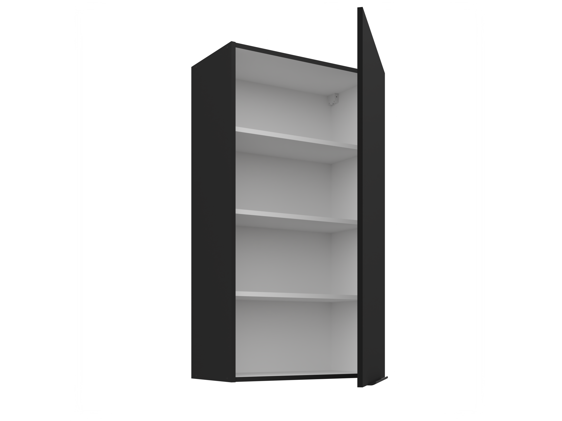 Alumistel ustega kappidel on üks riiul sees.